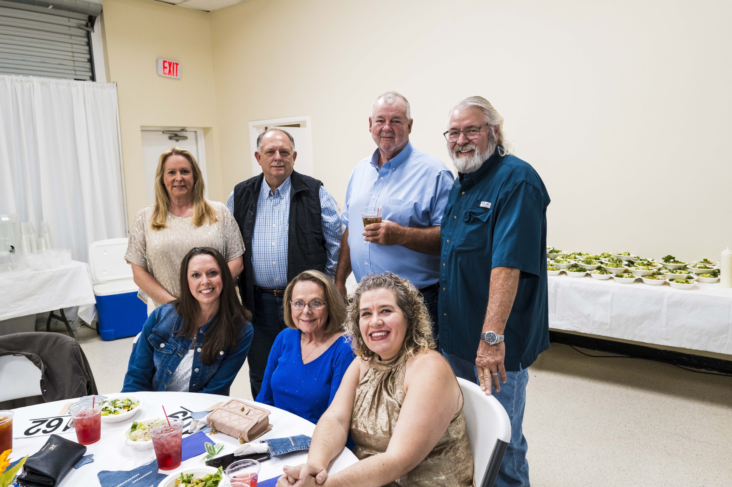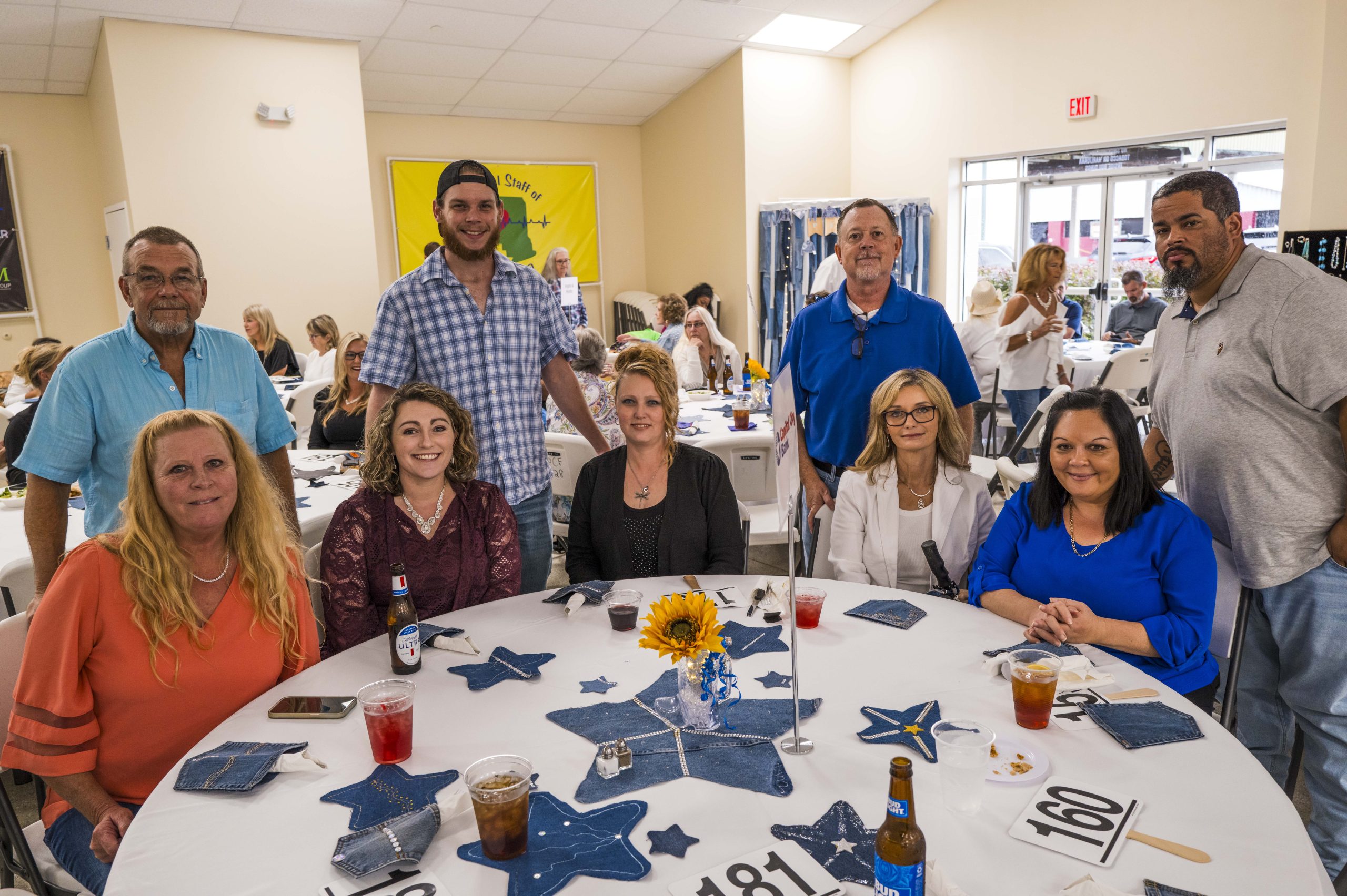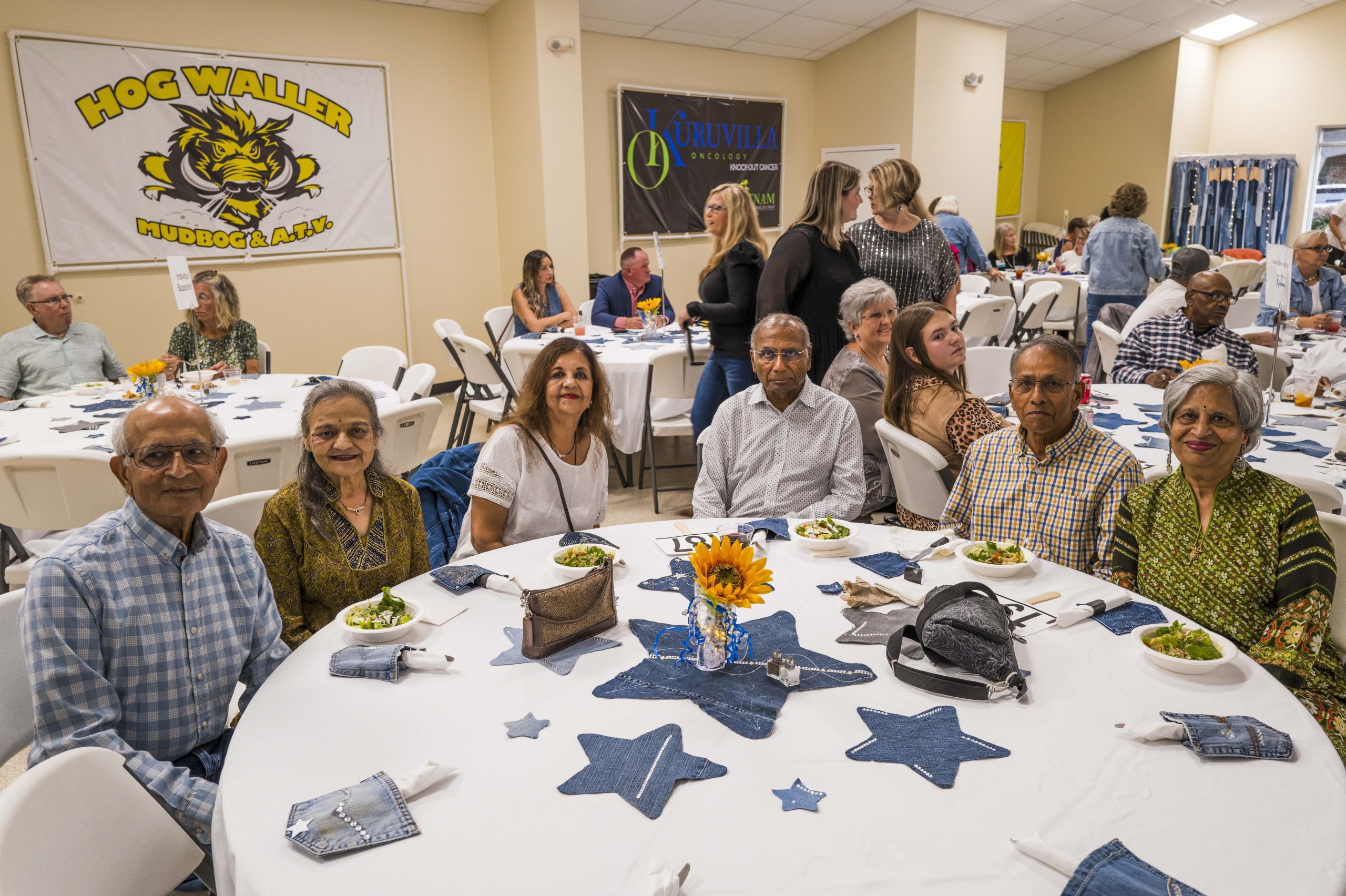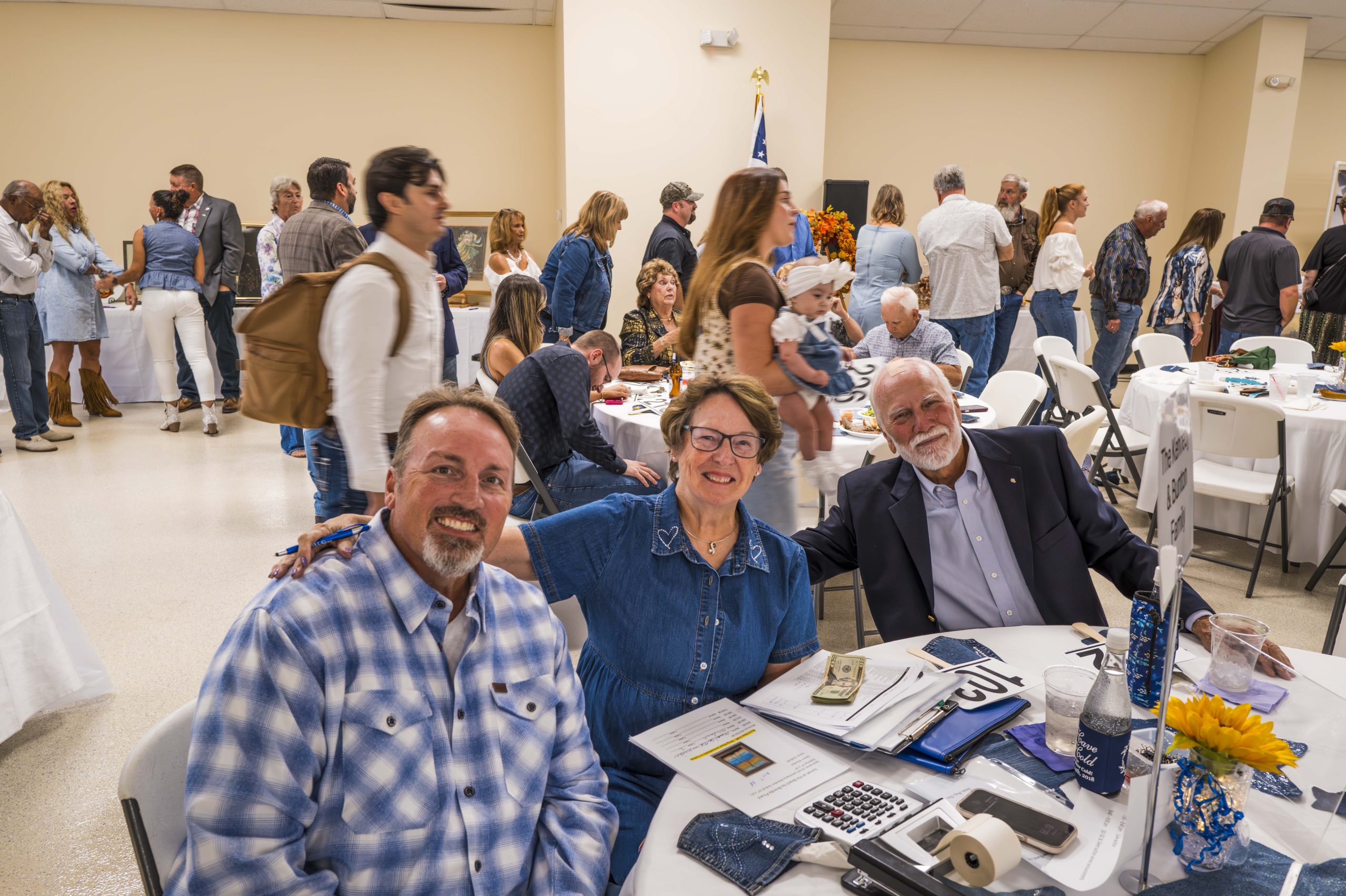 Photos, 2025 Denim & Diamonds Gala and Auction Mr. Mahaffey recipient of SAR community award (center) with his family, fellow PFCF volunteers, and representatives of the Sons of the American Revolution Capital City representatives give PFCF volunteers a $1,000 grant
