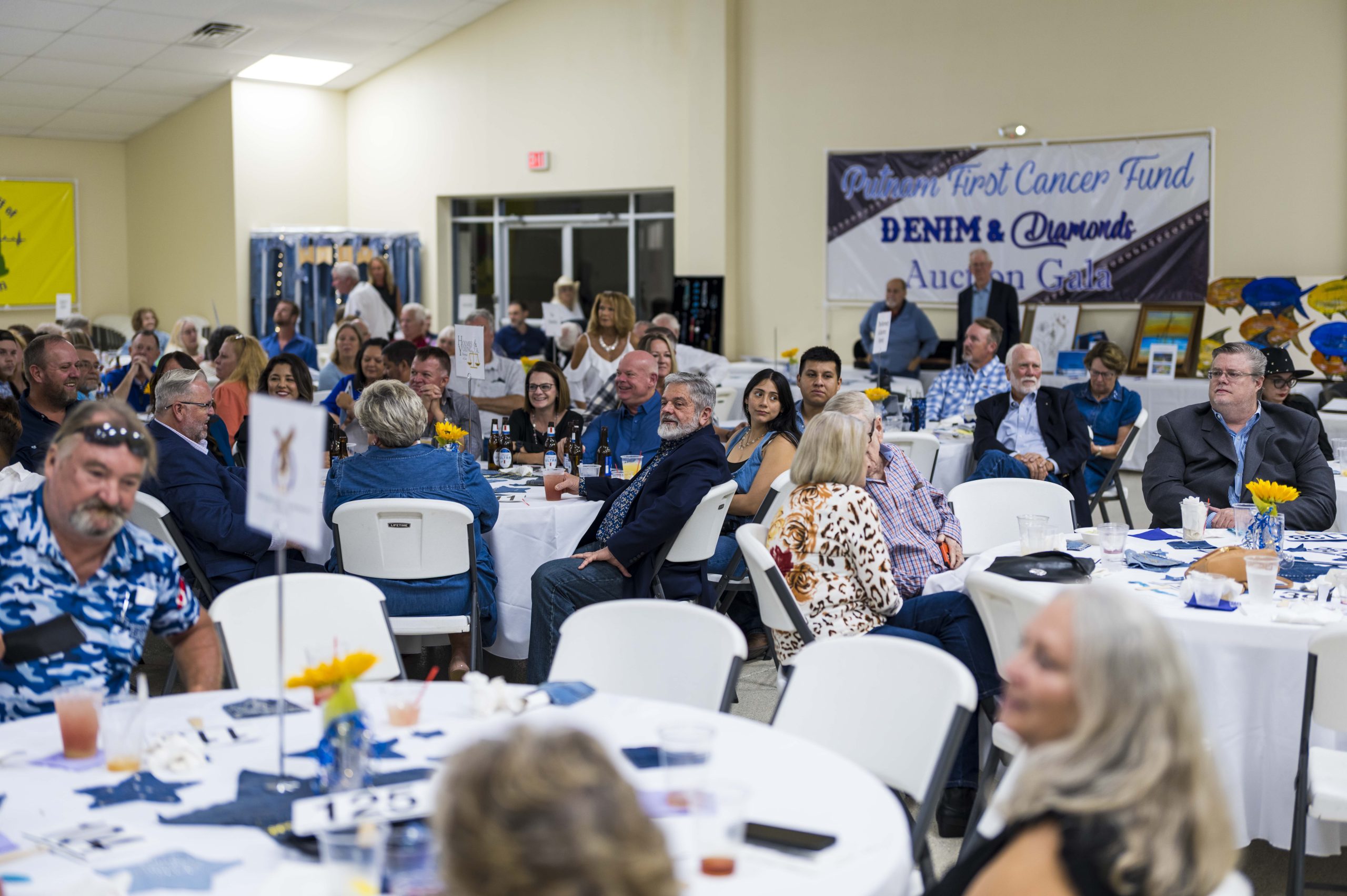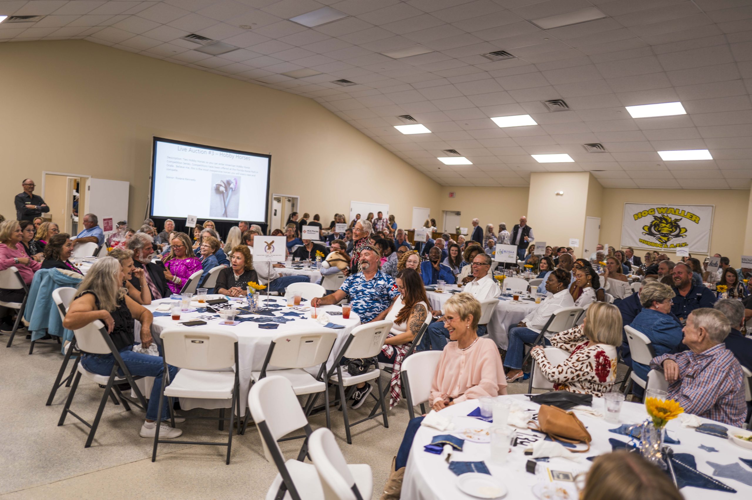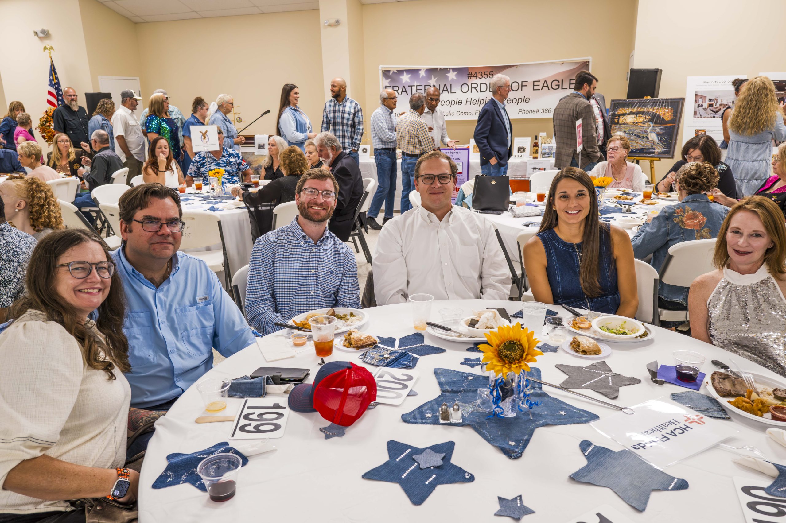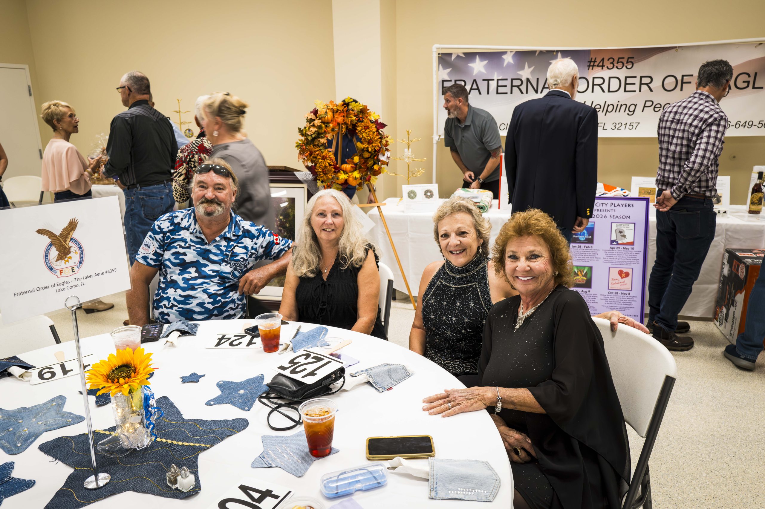 Photos, 2025 Denim & Diamonds Gala and Auction Mr. Mahaffey recipient of SAR community award (center) with his family, fellow PFCF volunteers, and representatives of the Sons of the American Revolution Capital City representatives give PFCF volunteers a $1,000 grant
