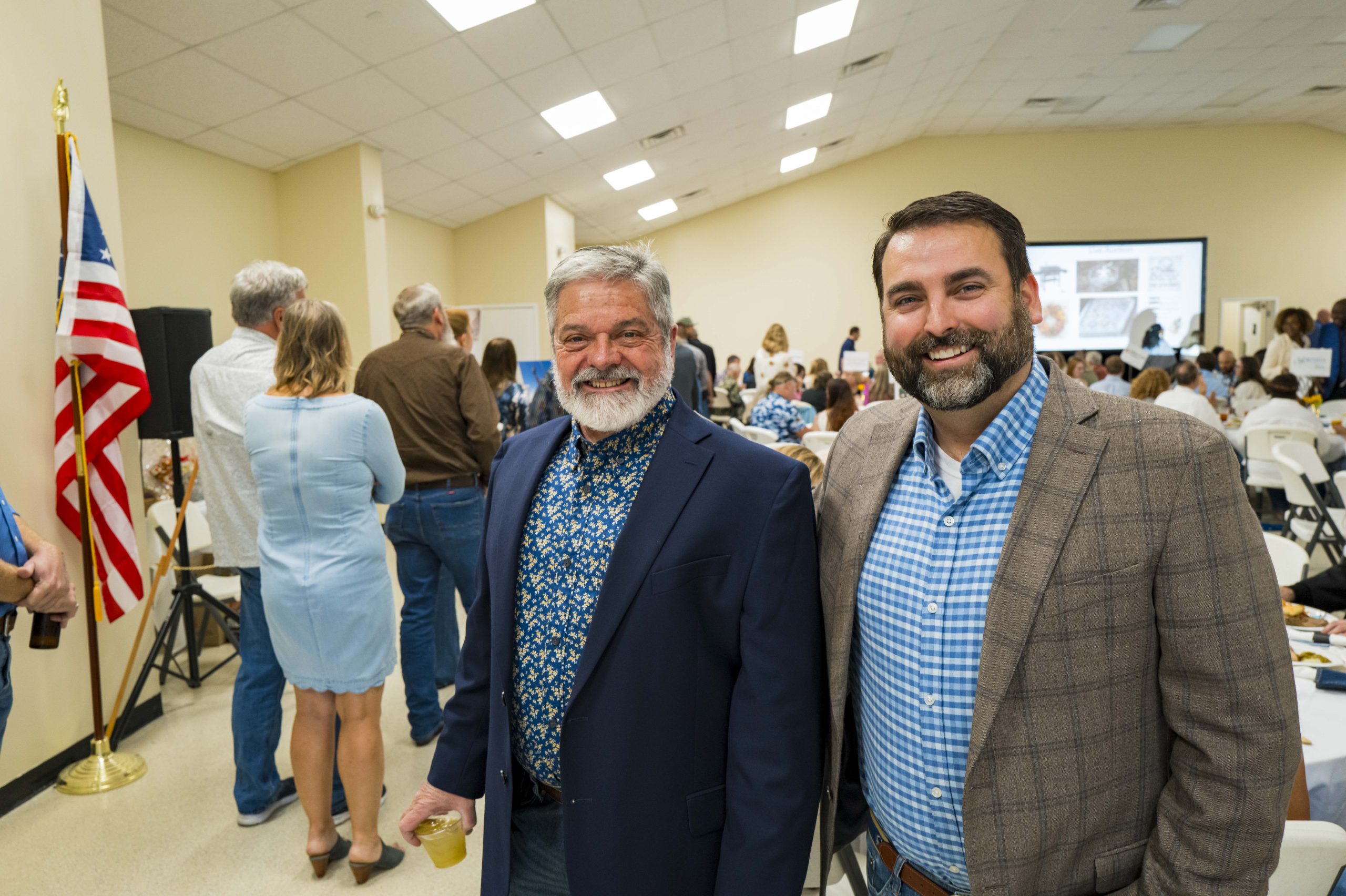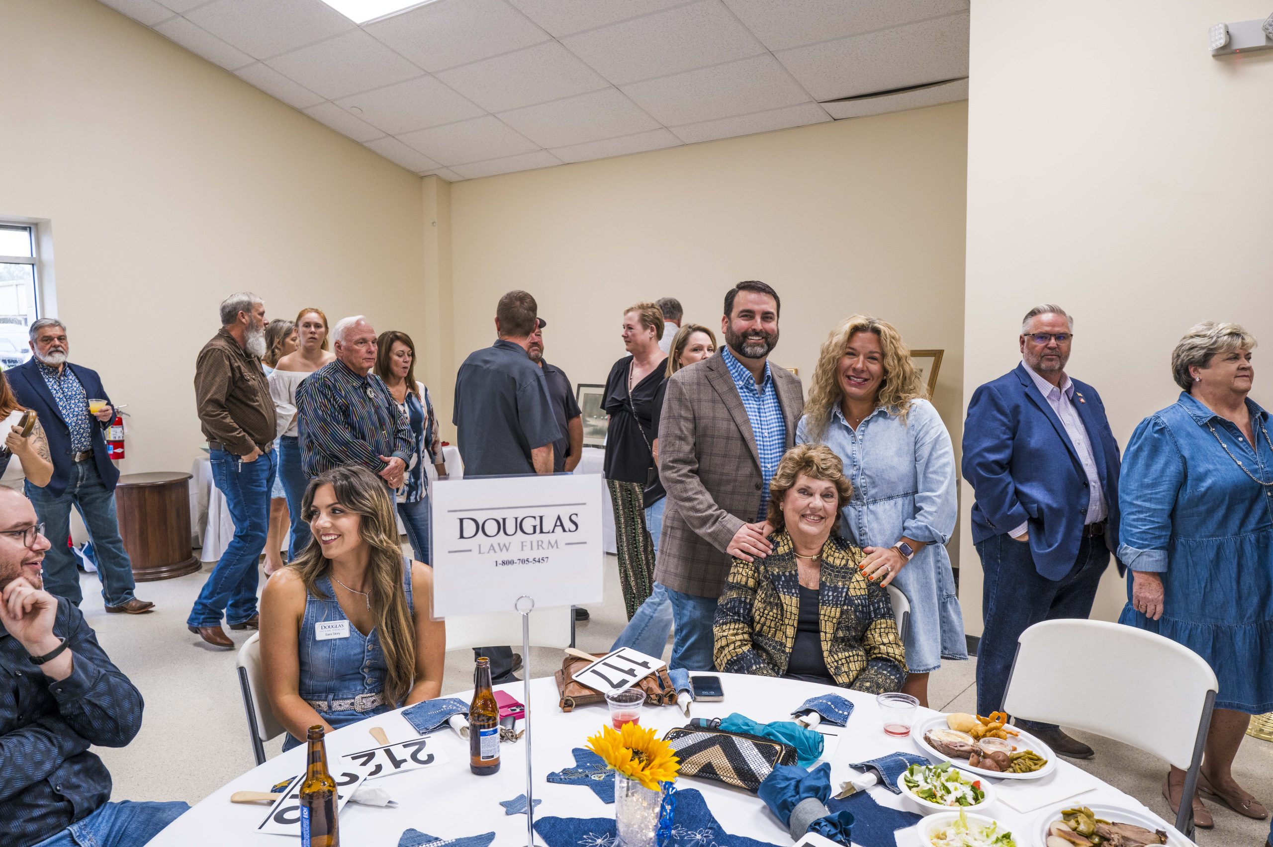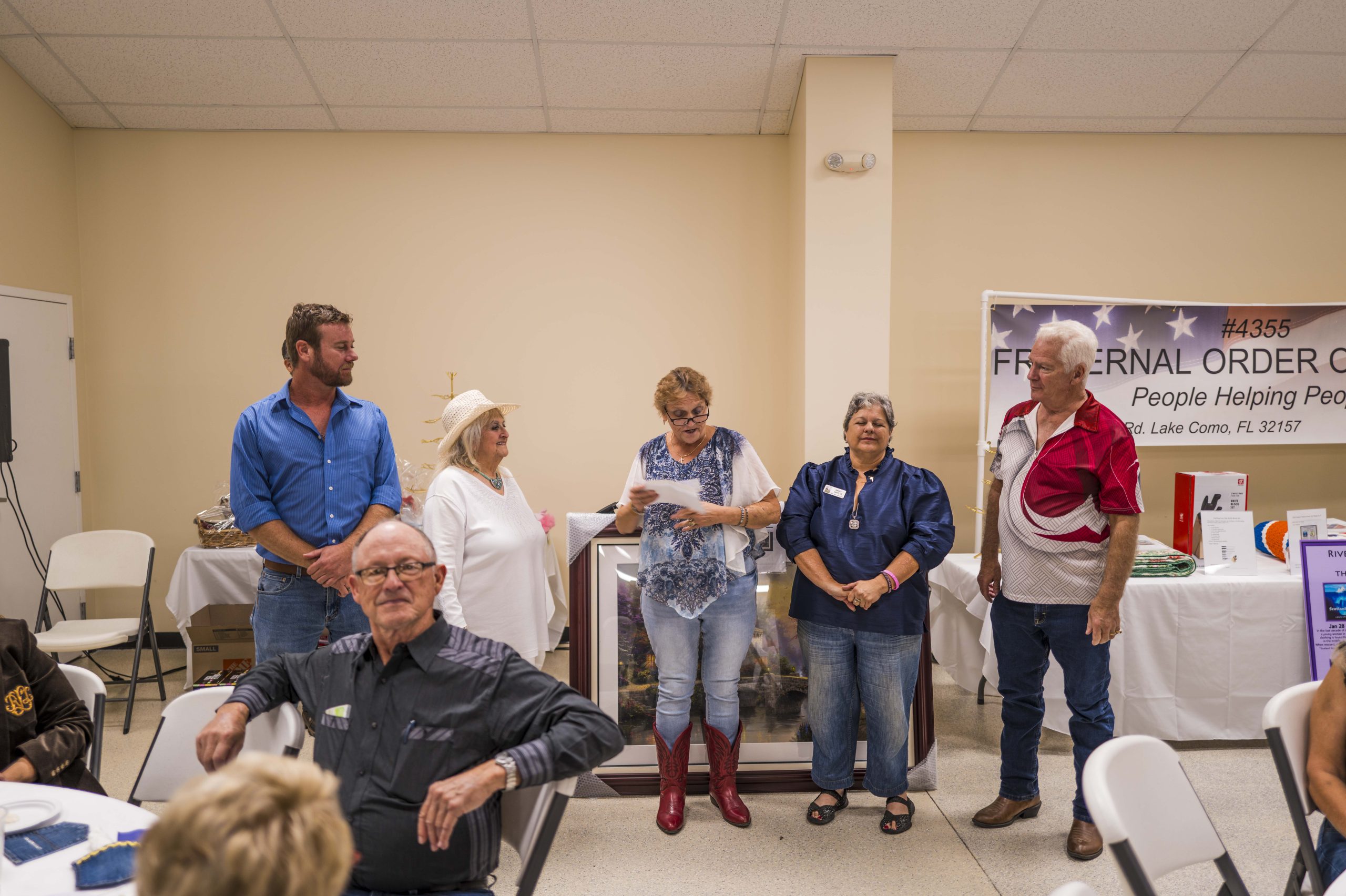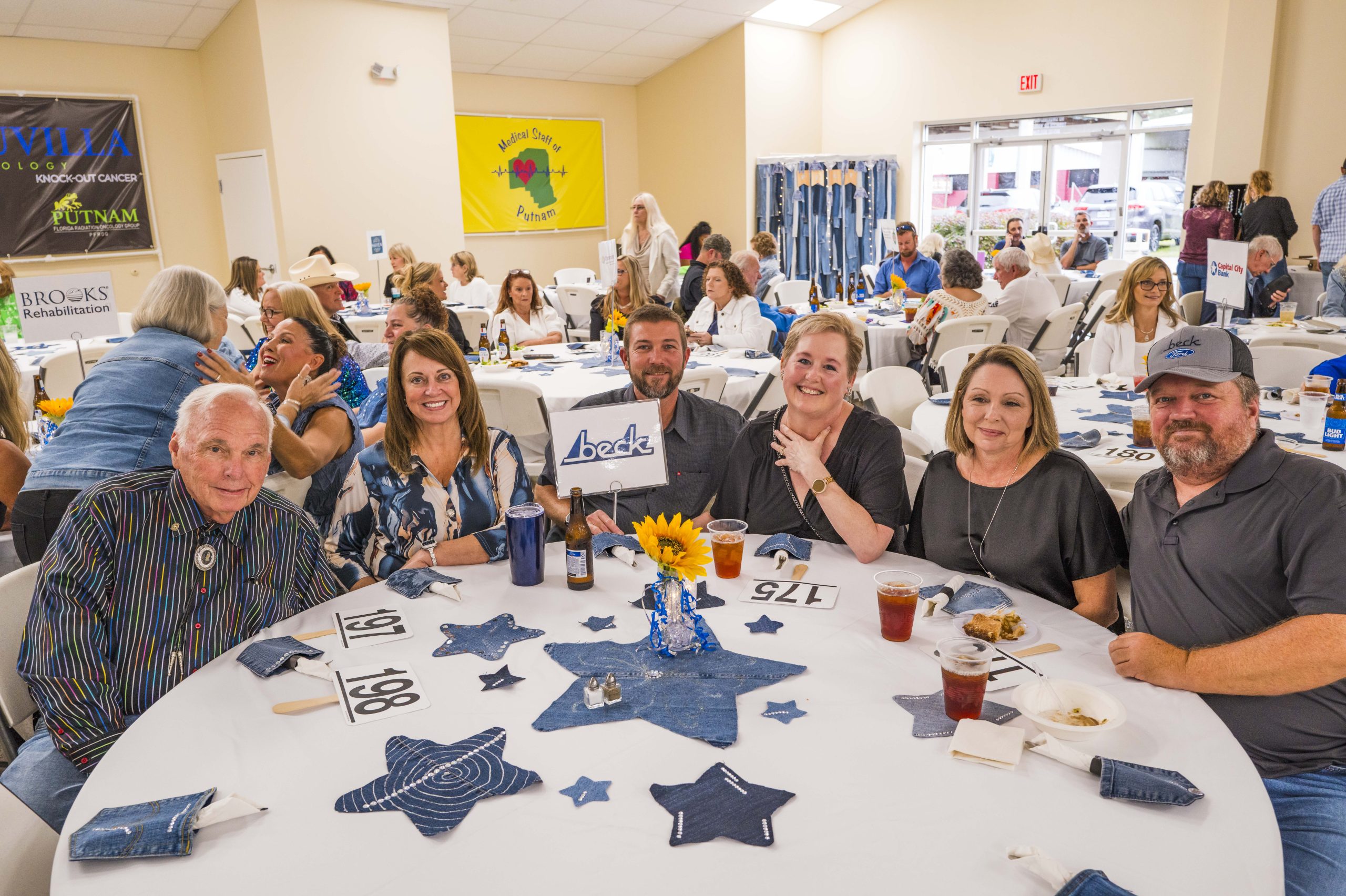 Photos, 2025 Denim & Diamonds Gala and Auction Mr. Mahaffey recipient of SAR community award (center) with his family, fellow PFCF volunteers, and representatives of the Sons of the American Revolution Capital City representatives give PFCF volunteers a $1,000 grant