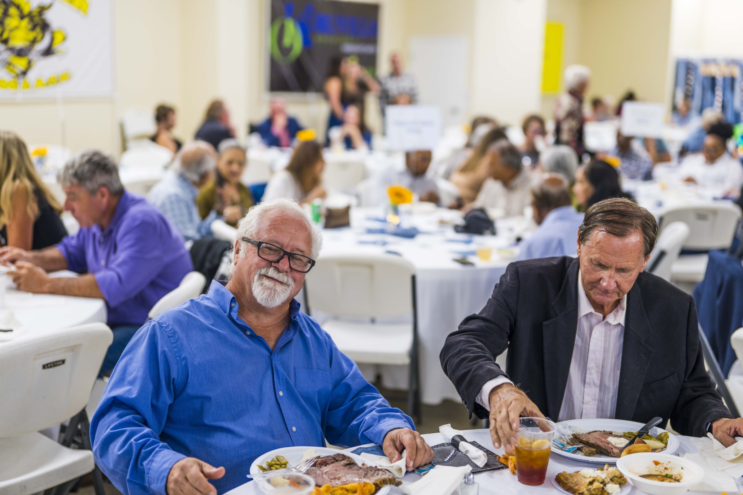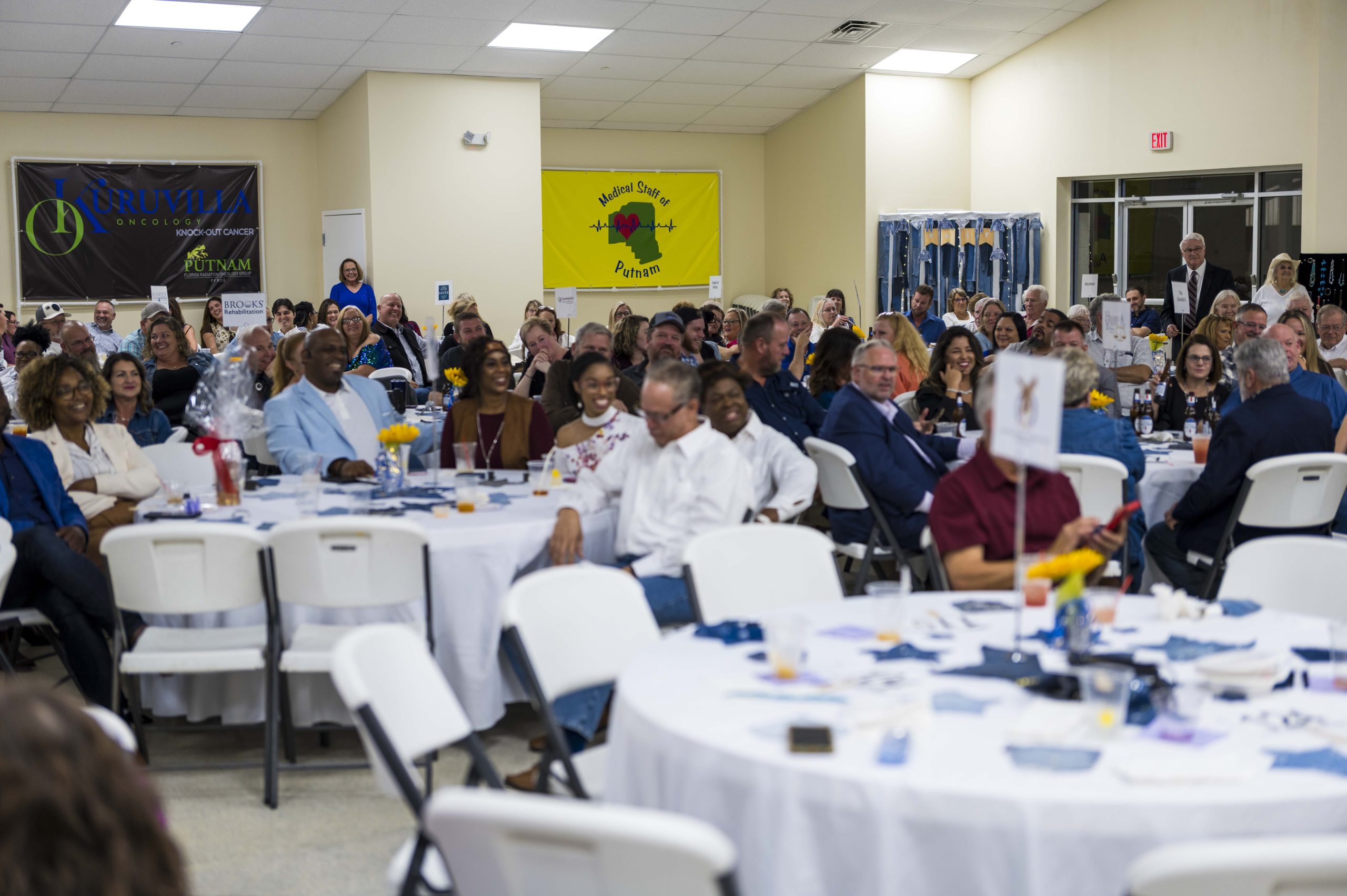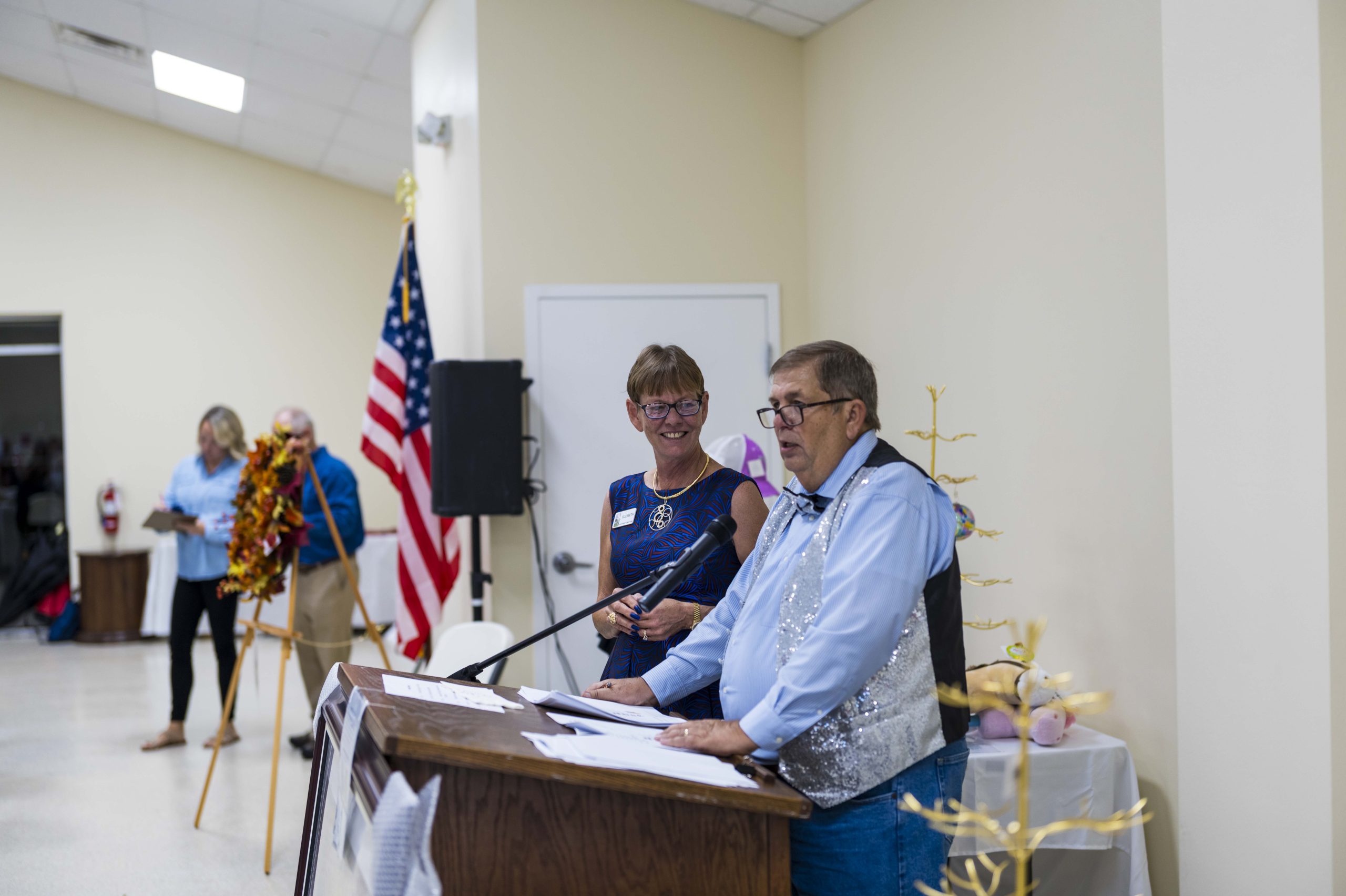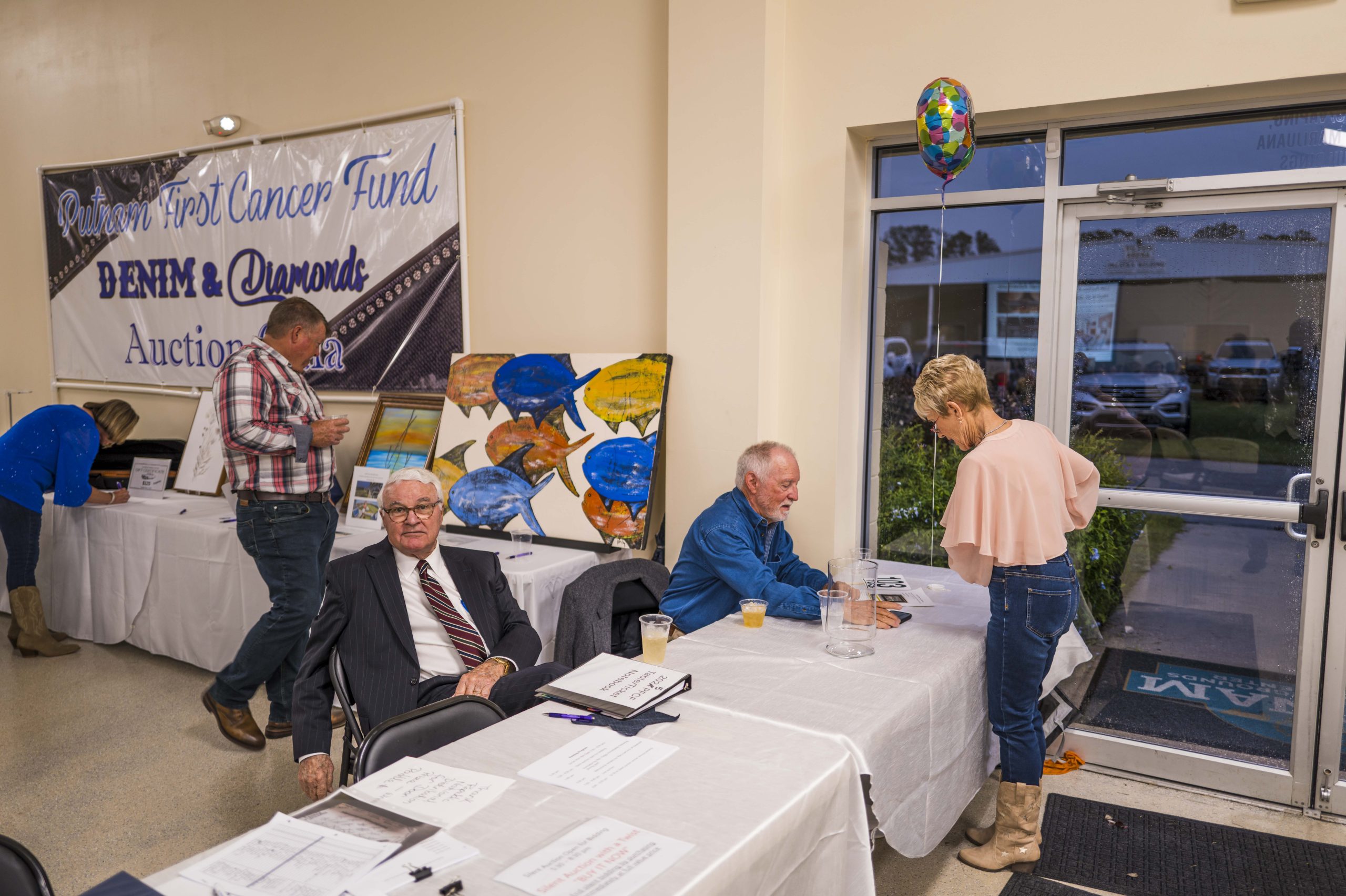 Photos, 2025 Denim & Diamonds Gala and Auction Mr. Mahaffey recipient of SAR community award (center) with his family, fellow PFCF volunteers, and representatives of the Sons of the American Revolution Capital City representatives give PFCF volunteers a $1,000 grant